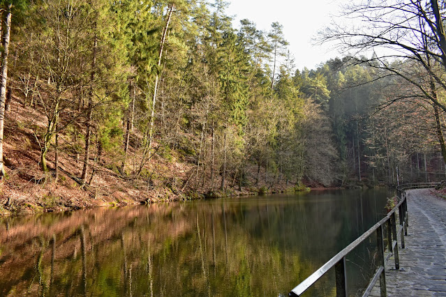 Zatím jsme šli po docela příjemné cestě s mírným převýšením k jezírku Amselsee. (Kosí jezero)